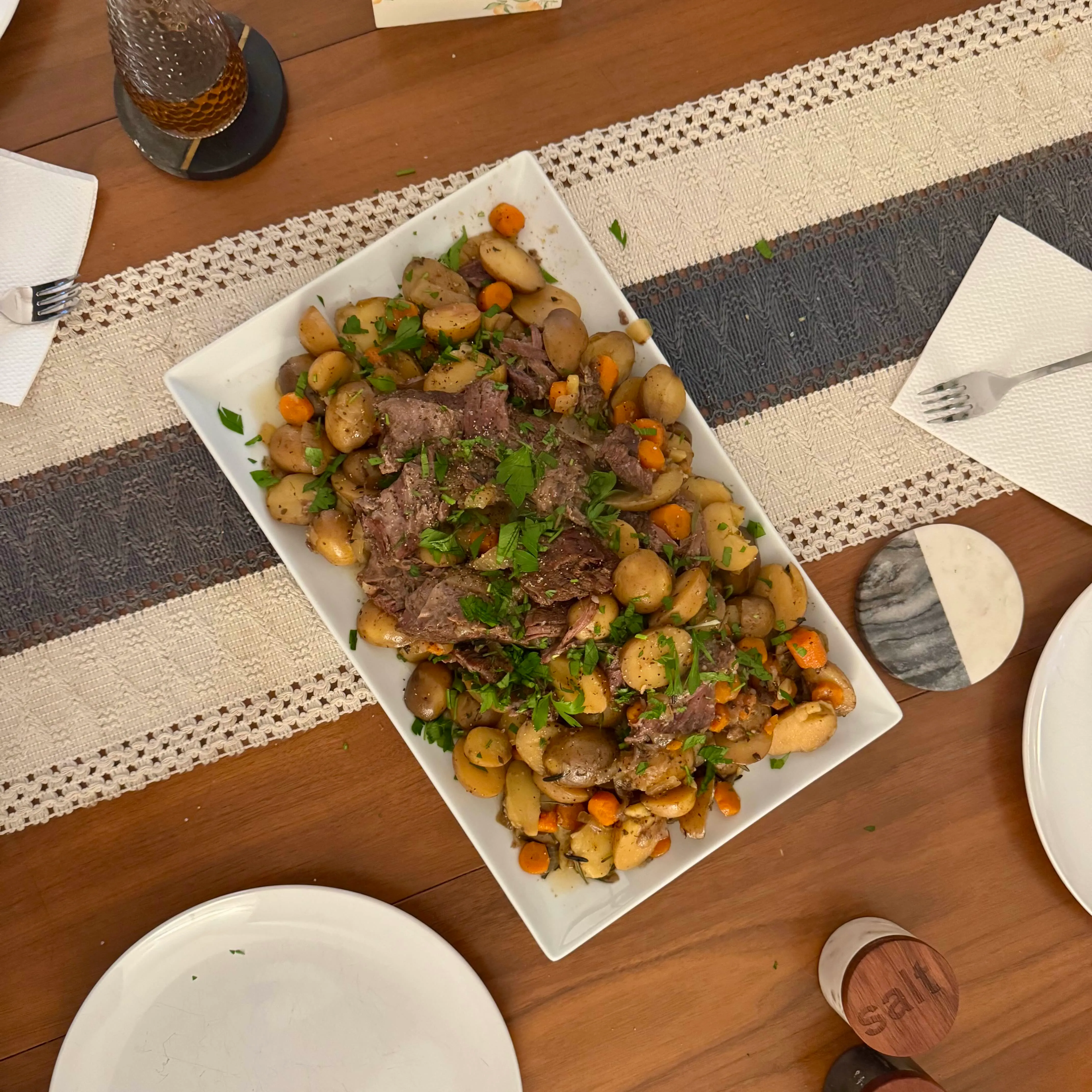 Meals we've served, in the order they arrived. Some are quiet weeknights for the two of us; some are Sundays with friends and their kids pulling chairs up to the counter. All of them were made at home.